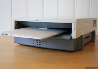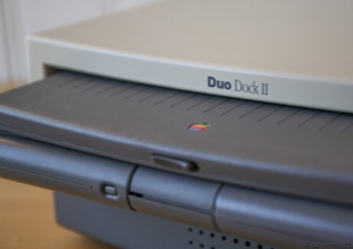 The duo-system was an intermediate thing between laptop and desktop. The overall system consisted of a stationary and a mobile unit. Worked the user at the desk he pushed the mobile device in a kind of cradle. The dimensions were impressive. Not the macbook air was apple's first notebook. With the powerbook duo launched early in the 90s apple had a notebook in the dimensions of a sheet of paper and less than two kilograms of weight.