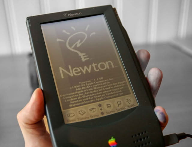It took apple more than six and a half years to develop the first newton messagepad. When it was finally released it had impressive specifications. 20 MHz processor, pressure-sensitive LCD-display, localtalk port, infra-red beamer. However, all these features were overshadowed by the newtons handwriting recognition. It was apple's pride and the expectations were high.