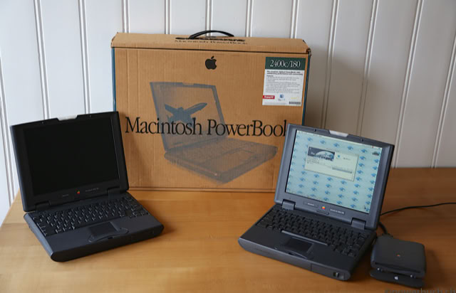 Like the powerbook 100 and duo series before it, it was sold with an external floppy drive. Apple did not offer a cd-rom drive for it which was otherwise standard for all other powerbooks. THe 2400c came with two pcmcia card slots. The 2400 is built around a 10.4 in (26 cm) active matrix color lcd screen, making the computer very compact indeed. Apple's current offering in this category is the macbook air. Due to its processor being located on a detachable daughter card, the PowerBook 2400c saw a small number of ppc G3 processor cards created for it. Companies such as interware, vimage, and newer technologies offered processor upgrades which would swap out the 603e for a G3 ranging from 240 MHz to 400 MHz.