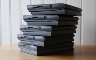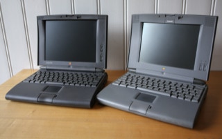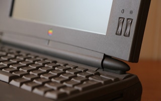The 500 series consists of four models – the 520, the 520c, the 540, and the 540c. The 520 and 520c run on a 25 MHz 68LC040 CPU, and have a 9.5″ passive-matrix screens. The 520′s is grayscale and the 520c’s is capable of displaying 256 colors. The color screen uses dual scan technology which is better than the technology in the 520. The 540 bumps the CPU speed up to 33 MHz and provides an active-matrix grayscale display. It is slightly smaller at 9″. The 540c is the top end and adds a 16-bit active-matrix color display to the mix. All models shipped with 4 MB of RAM (still) and have hard drives ranging from 160 – 240 MB (520/520c) and 240 – 500 MB (540/540c) in size. The 520′s shipped with one battery and the 540′s shipped with two. Each battery lasts about 2.5 hours on a charge. All models include system 7.1.1 installed and can run up to Mac OS 8.1.